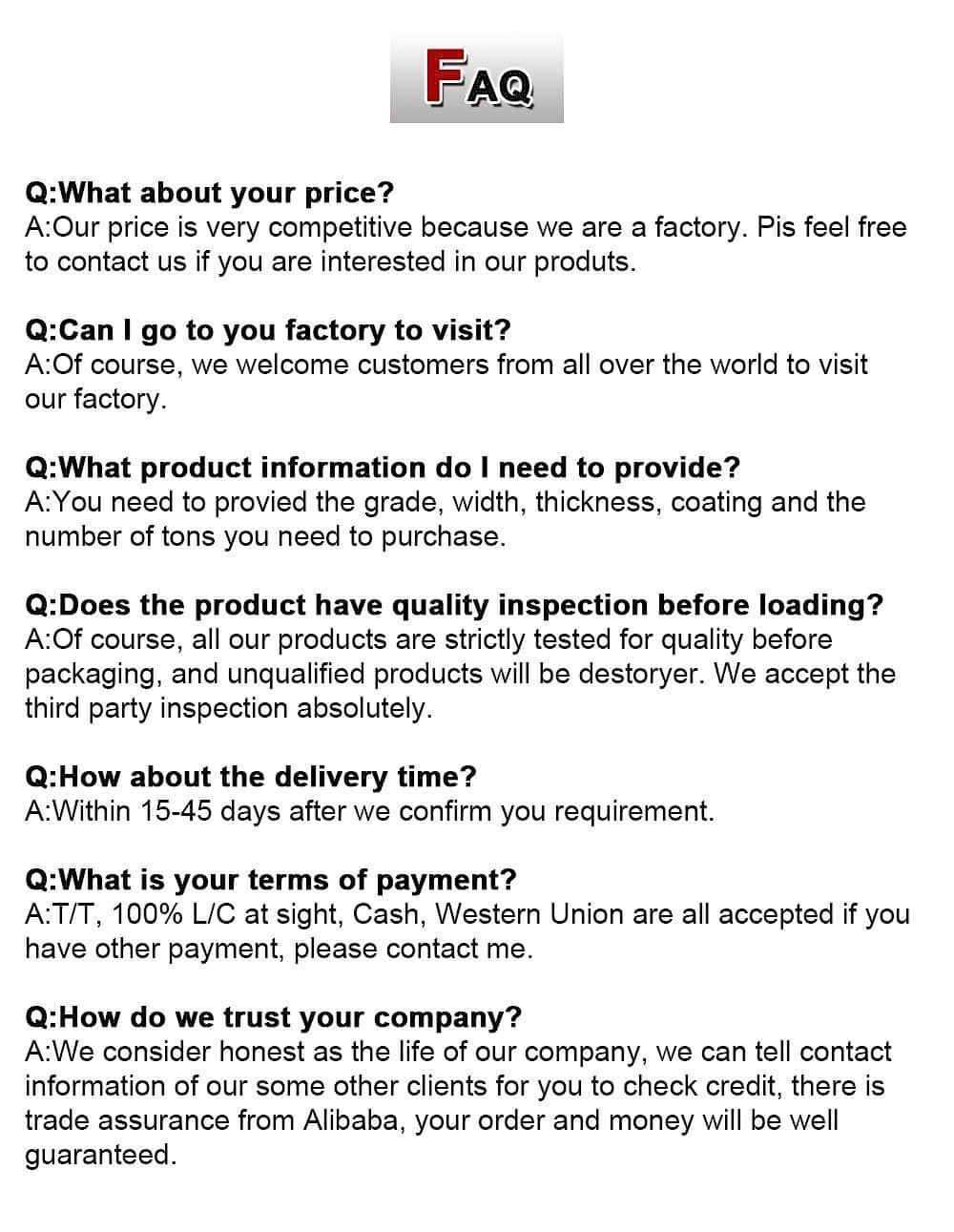 Поддерживая принцип 'Customer First ', компания предоставляет персонализированные услуги настройки. От дизайна продукта до производства и доставки, каждый шаг строго контролируется, чтобы обеспечить создание высококачественных продуктов, которые соответствуют конкретным требованиям глобальных клиентов. Благодаря отличному качеству продукции и хорошей бизнес -репутации, компания постоянно расширяла свой бизнес и завоевала широкое признание и доверие от клиентов дома и за рубежом. В будущем Haihong Steel будет продолжать продвигаться вперед, продвигать развитие посредством инноваций и вводить новую жизненную силу на мировой рынок металлических продуктов.